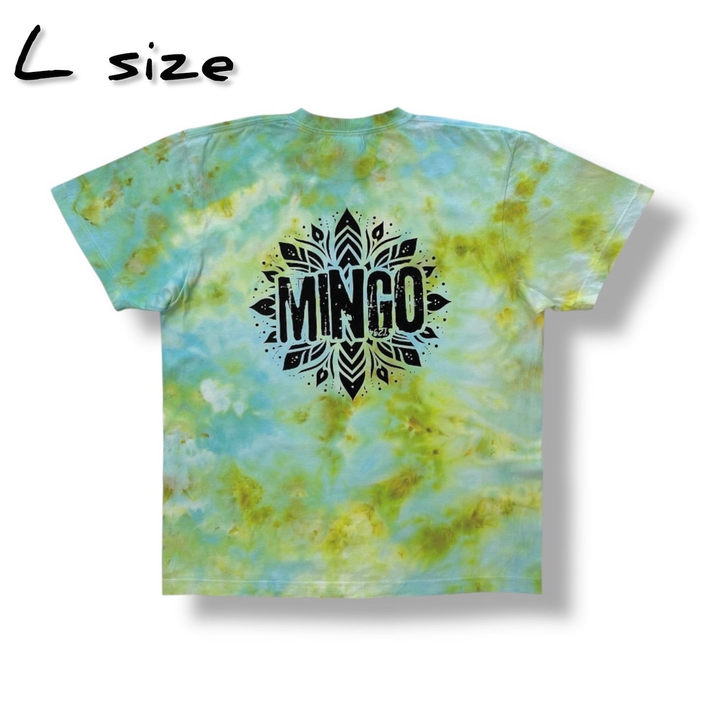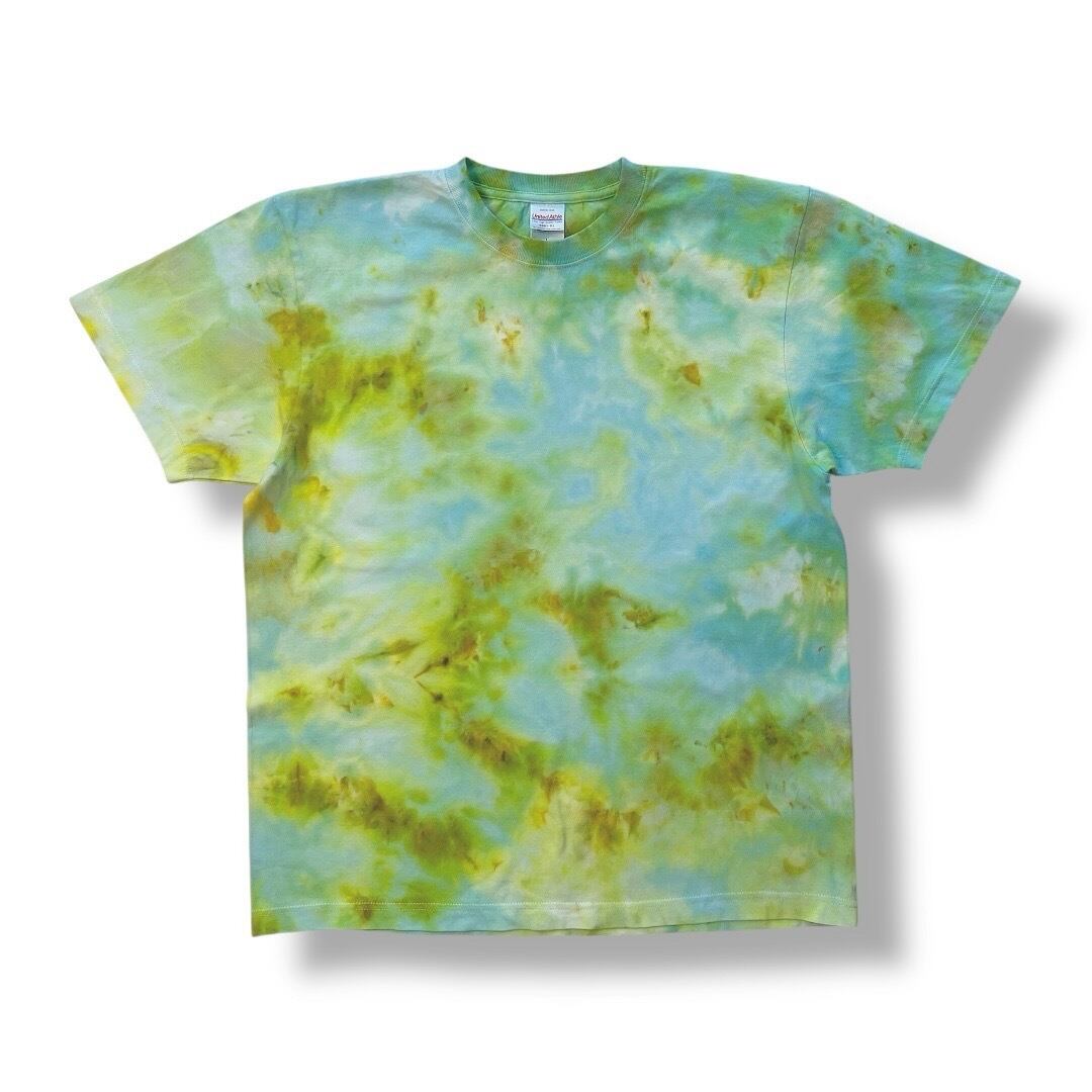 アイスダイ染めTシャツ【BIG LOGO 淡翠】size L